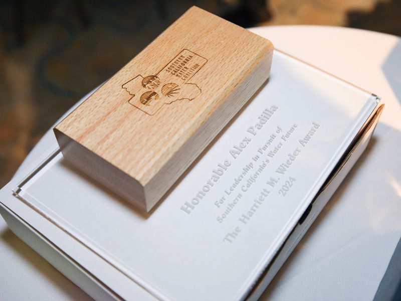 - Harriett Wieder Award: Adán Ortega Jr., Board Chair of the Metropolitan Water District, accepted the Harriett Wieder Award on behalf of Senator Alex Padilla, recognized for his role in the Bipartisan Infrastructure Law, which is providing substantial support for the Pure Water Southern California project—the world’s largest water recycling facility. The Harriett M. Wieder Water Leadership Award honors leaders dedicated to California’s water supply issues, symbolized by a block of wood representing Wieder’s famous approach to making an impact: “sometimes you have to hit someone with a 2×4.