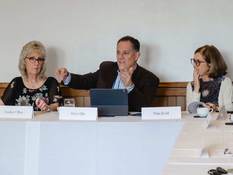 - Eunice Ulloa, Steve Elie and Tina Javid participate in the SCWC Board meeting. and